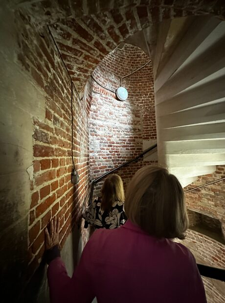 Complete with its stone handrail sunk into the wall and [with] internal evidence of a doorway from the great chamber midway between the [current] ground and first-floor level.